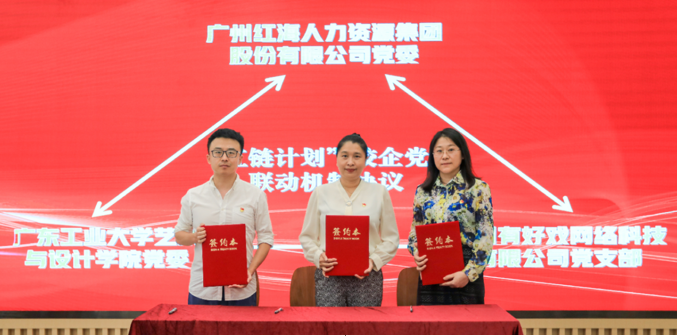 隨后,依托越秀區(qū)內(nèi)高校優(yōu)質(zhì)畢業(yè)生源,對接行業(yè)、企業(yè)人才需求,形成校企聯(lián)動促就業(yè)機(jī)制,著力解決大學(xué)生就業(yè)以及企業(yè)人才需求的痛點(diǎn)、難點(diǎn)問題。紅海人力黨委與廣東工業(yè)大學(xué)藝術(shù)與設(shè)計(jì)學(xué)院黨委、廣州有好戲網(wǎng)絡(luò)科技有限公司黨支部三方在現(xiàn)場簽訂《“紅鏈計(jì)劃”校企黨團(tuán)聯(lián)動機(jī)制協(xié)議書》,共同促進(jìn)“校企聯(lián)動體系”“黨團(tuán)人才培育”“就業(yè)培訓(xùn)基地”三方面建設(shè),以黨建促團(tuán)建,以高質(zhì)量黨建促進(jìn)非公有制經(jīng)濟(jì)高質(zhì)量發(fā)展,推動校企之間、企業(yè)之間開展聯(lián)建共建,努力實(shí)現(xiàn)以黨建引領(lǐng)促進(jìn)社會化就業(yè)、服務(wù)經(jīng)濟(jì)社會發(fā)展。
