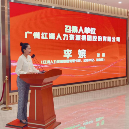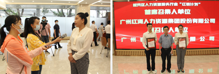 啟動儀式伊始,紅海人力集團(tuán)副總裁、黨委書記李嬪以“黨建如何融入生產(chǎn)經(jīng)營,促進(jìn)行業(yè)發(fā)展”為題,現(xiàn)場接受了廣州電視臺的采訪,同時作為首席召集人單位黨組織負(fù)責(zé)人進(jìn)行了講話。