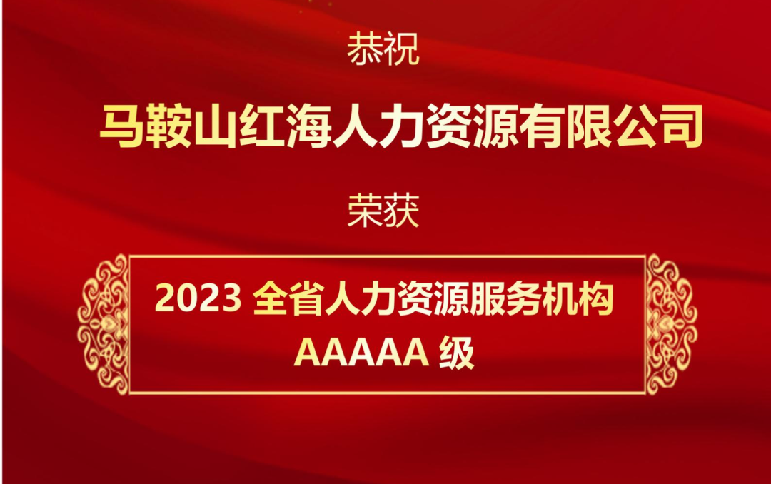 根據(jù)安徽省人力資源和社會(huì)保障廳《2023年全省人力資源服務(wù)機(jī)構(gòu)AAAAA等級(jí)評(píng)定結(jié)果公示》,馬鞍山紅海人力資源有限公司榮獲AAAAA級(jí)人力資源機(jī)構(gòu)認(rèn)定。