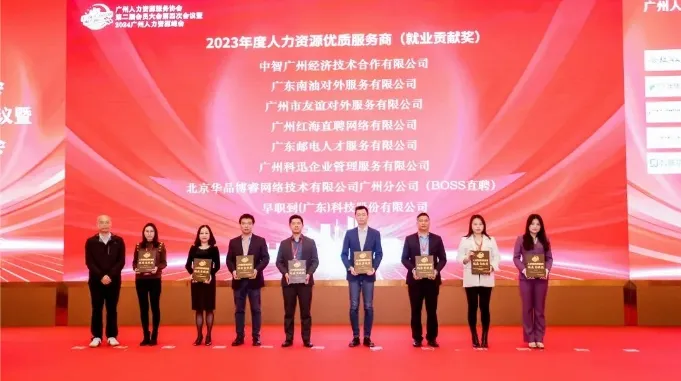 “廣州人力資源服務(wù)協(xié)會(huì)第二屆會(huì)員大會(huì)第四次會(huì)議暨2024廣州人力資源峰會(huì)”隆重舉行。紅海直聘憑借專業(yè)的服務(wù)品質(zhì)、市場(chǎng)競(jìng)爭(zhēng)力的擴(kuò)大以及在穩(wěn)就業(yè)保民生工作中的突出貢獻(xiàn),一舉斬獲了“2023年度人力資源優(yōu)質(zhì)服務(wù)商(就業(yè)貢獻(xiàn)獎(jiǎng))”重要獎(jiǎng)項(xiàng)。
