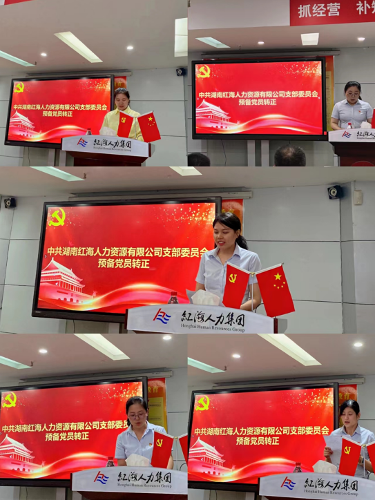 隨后,中共湖南紅海人力資源有限公司委員會(huì)召開(kāi)黨員大會(huì)討論預(yù)備黨員轉(zhuǎn)正事宜。湖南紅海本次共有五名預(yù)備黨員在“七一”建黨節(jié)這一天成為一名正式的中國(guó)共產(chǎn)黨黨員。