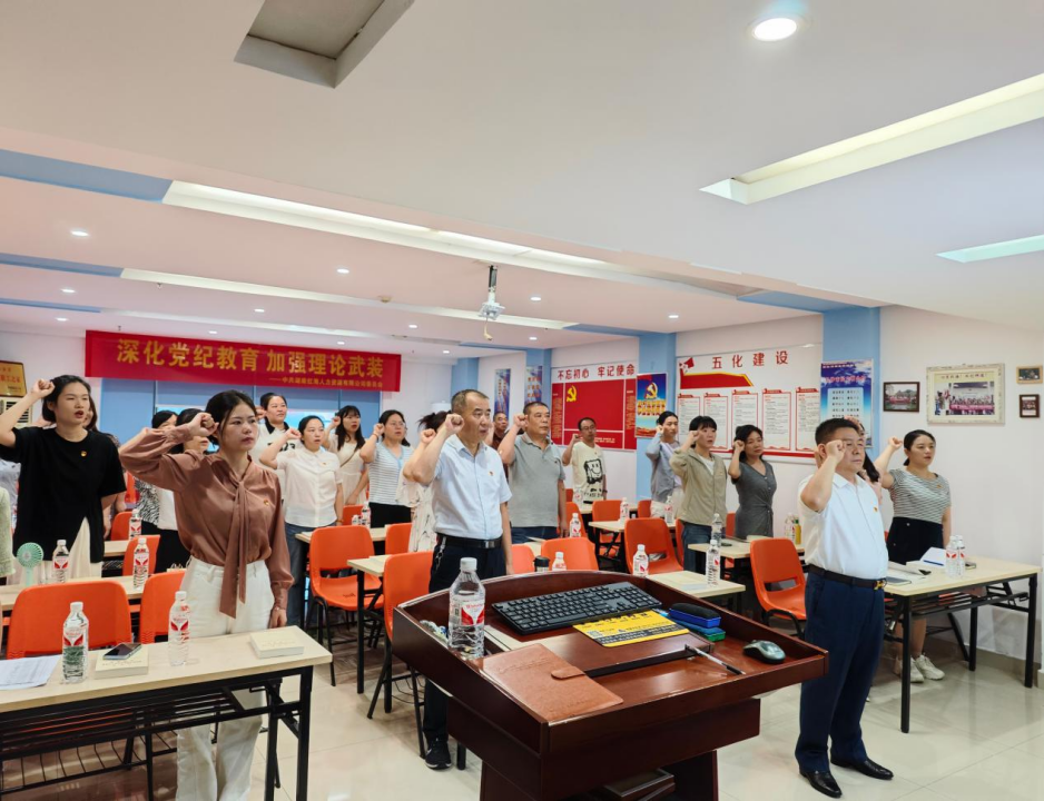 全體黨員在湖南紅海培訓(xùn)室重溫入黨誓詞