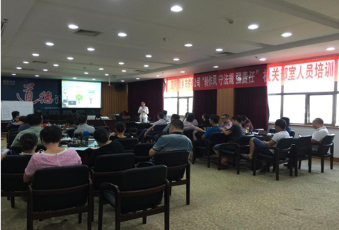 湘潭紅海培訓(xùn)負(fù)責(zé)人項斌(左一)湘鄉(xiāng)電力局局領(lǐng)導(dǎo)(左二、三)講師(右一)