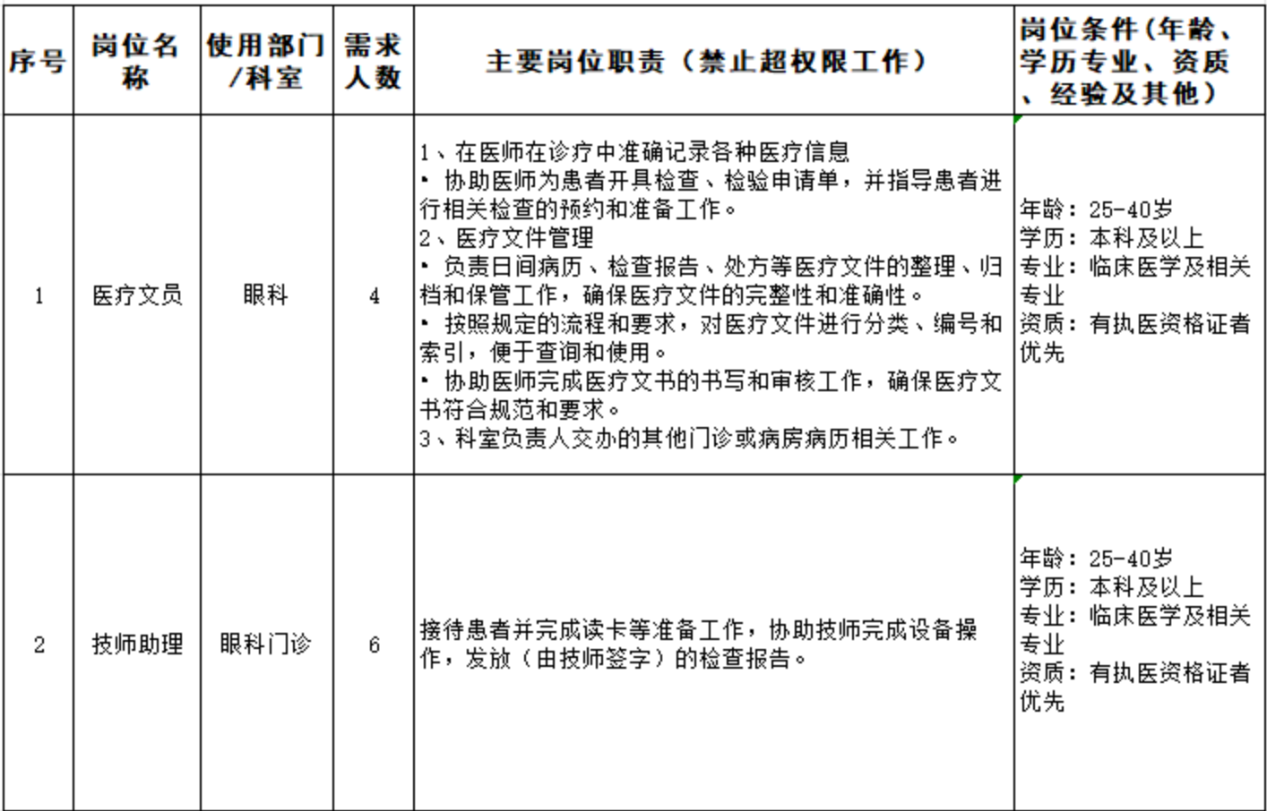 因工作需要,長沙紅海人力資源有限公司現(xiàn)面向社會(huì)公開招聘眼科醫(yī)療文員、門診技師助理勞務(wù)派遣至中南大學(xué)湘雅二醫(yī)院工作。具體招聘事項(xiàng)如下: