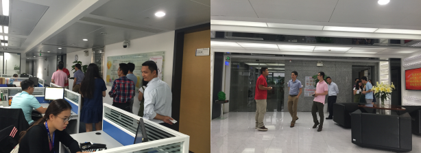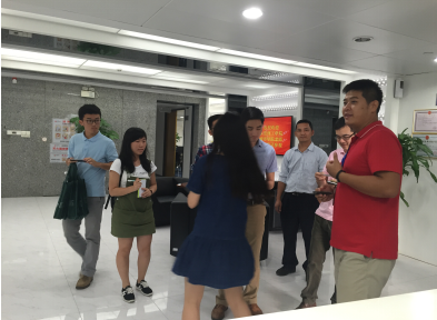 當(dāng)天下午三點,東莞理工學(xué)院城市學(xué)院(下面簡稱為城院)的六名師生到達公司,由支撐中心招聘部劉旭經(jīng)理熱情接待。為能讓城院師生更好地了解我司組織架構(gòu)及業(yè)務(wù)范圍,劉經(jīng)理帶領(lǐng)他們參觀公司。通過對公司環(huán)境實地視察以及各司各部的介紹,城院師生對我司經(jīng)營表示認(rèn)可,并有意向洽談校企合作。