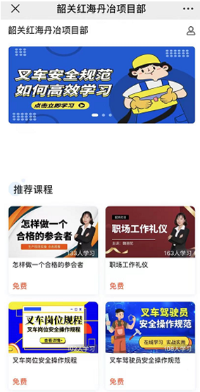 同時利用紅海云課堂等線上培訓(xùn)平臺,創(chuàng)建韶關(guān)紅海項目部網(wǎng)校平臺,讓我們的員工可以直接通過手機進行上崗前的安全生產(chǎn)理論培訓(xùn)作業(yè)與相關(guān)理論規(guī)程培訓(xùn)等,使員工隨時隨地都可以進行培訓(xùn)學(xué)習(xí),提高培訓(xùn)效率。