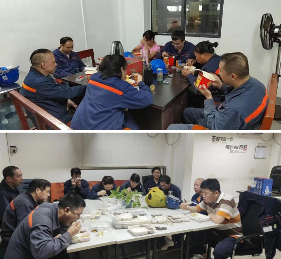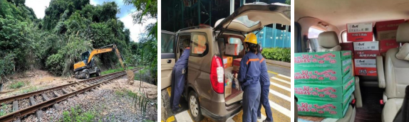 持續(xù)強(qiáng)降雨加上水庫(kù)泄洪,積水內(nèi)澇嚴(yán)重,有的項(xiàng)目部如利用挖掘機(jī)疏通下水管道,協(xié)助搶修;有的項(xiàng)目部則因各線各班人員到崗困難,但夜班員工仍然選擇留崗堅(jiān)守,我們的管理人員則身先士卒,第一時(shí)間運(yùn)送物資慰問(wèn),并親自接送員工進(jìn)出,以確保安全。