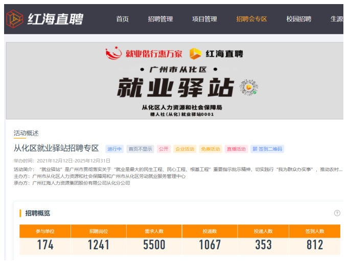 累計(jì)收到1067份簡(jiǎn)歷投遞,投遞人數(shù)累計(jì)達(dá)到353人次,簽到人數(shù)累計(jì)達(dá)到812人次,企業(yè)會(huì)同步通過線上從化區(qū)就業(yè)驛站招聘專區(qū)與求職者溝通,體現(xiàn)了就業(yè)驛站同步通過紅海直聘平臺(tái)數(shù)字化人力資源服務(wù)實(shí)現(xiàn)了就業(yè)驛站服務(wù)多元化、平臺(tái)化、數(shù)字化、靈活性、便捷性。