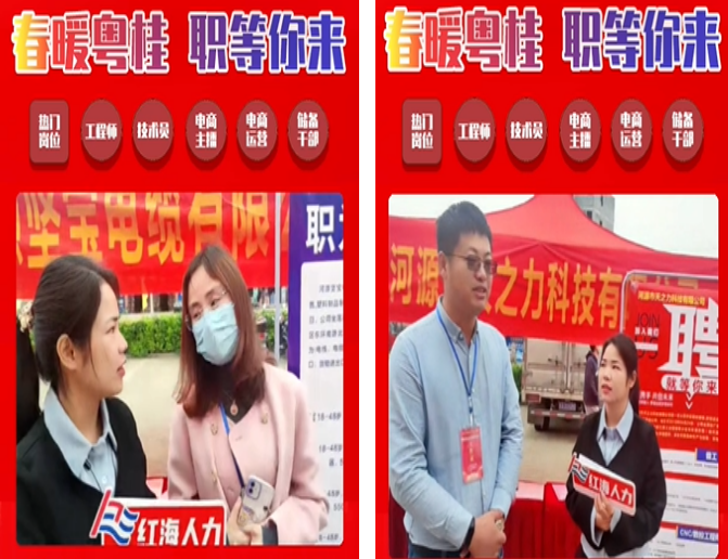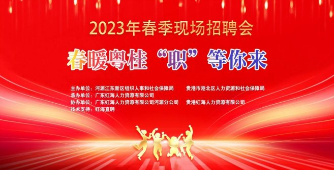 本次由河源江東新區(qū)組織人事和社會保障局、貴港市港北區(qū)人力資源和社會保障局主辦,廣東紅海人力資源有限公司承辦,廣東紅海人力資源有限公司河源分公司、貴港紅海人力資源有限公司協(xié)辦的“春暖粵桂,職等你來”現(xiàn)場招聘會于4月8日至4月9日圓滿結(jié)束!
