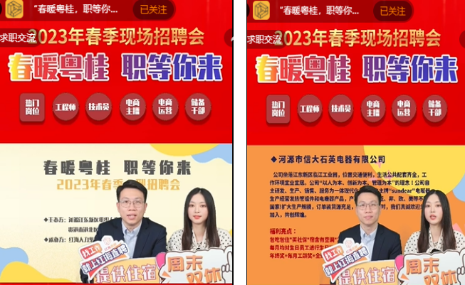 為了讓無法到達(dá)現(xiàn)場的廣大求職者了解到招聘會信息,本次的直播帶崗設(shè)有主會場及分會場,主會場的直播間實時連線現(xiàn)場,邀請部分企業(yè)代表進(jìn)行采訪介紹企業(yè)及崗位薪資待遇等信息,充分地讓求職者對企業(yè)的崗位信息更清晰明了,實現(xiàn)了“屏對屏”雙向互動,為求職者與企業(yè)搭建實時溝通的橋梁。