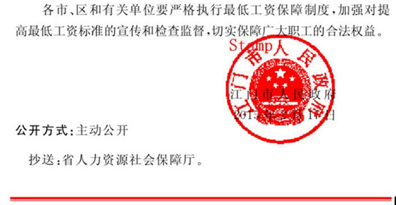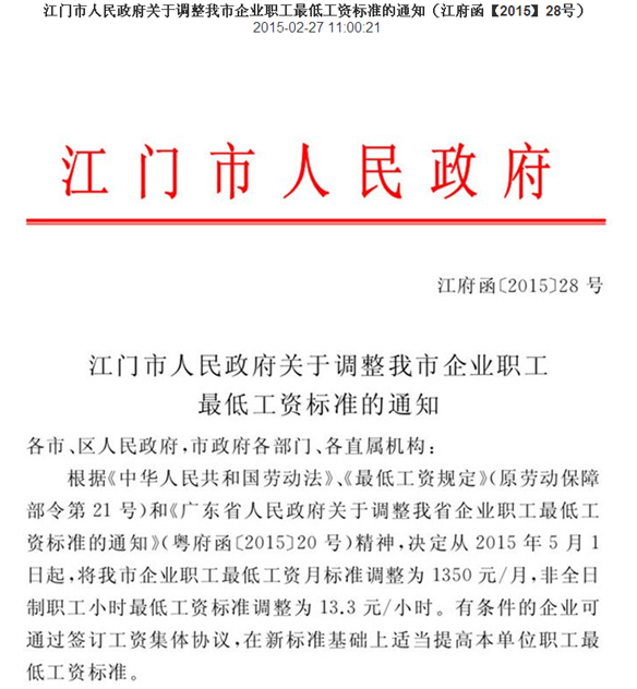 關(guān)于調(diào)整江門市企業(yè)最低工資標準的通知