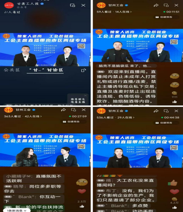 作為活動承辦方,張掖紅海充分發(fā)揮專業(yè)優(yōu)勢,依托數(shù)字化技術(shù)打造沉浸式“直播帶崗”場景。直播間內(nèi),紅海團隊通過機位切換、虛擬背景展示及實時彈幕互動,生動呈現(xiàn)前進牧業(yè)、新樂超市、神農(nóng)菇業(yè)等30多家企業(yè)的100余個崗位信息,涵蓋零售業(yè)、現(xiàn)代農(nóng)業(yè)、現(xiàn)代服務(wù)等熱門領(lǐng)域。主播與工會主席、企業(yè)HR聯(lián)動,詳細解讀崗位要求、薪資福利及晉升路徑,充分展現(xiàn)“云端”招聘的高效與便捷。