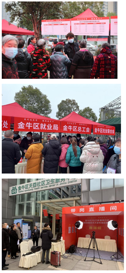 2023年2月16日上午九點(diǎn),由金牛區(qū)人社局、金牛區(qū)天回鎮(zhèn)街道辦事處主辦,金牛區(qū)就業(yè)局、各街道綜合便民服務(wù)中心、四川紅海人力資源管理有限公司承辦的金牛區(qū)2023年春風(fēng)行動(dòng)暨就業(yè)援助月大型專(zhuān)場(chǎng)招聘活動(dòng)在金牛區(qū)天回鎮(zhèn)街道綜合便民服務(wù)中心廣場(chǎng)舉行,此次招聘會(huì)吸引了30余家企業(yè)參與,總崗位數(shù)近2000個(gè),涵蓋了技工、普工、文職等多個(gè)類(lèi)型職位,除了此之外,還有針對(duì)未就業(yè)高校畢業(yè)生、退役軍人、農(nóng)民工、就業(yè)困難人員等各類(lèi)群體的招聘崗位。此次活動(dòng)緊緊圍繞“春風(fēng)送真情,援助暖民心”為主題開(kāi)展,提供就業(yè)崗位資源信息,幫助實(shí)現(xiàn)就業(yè)。