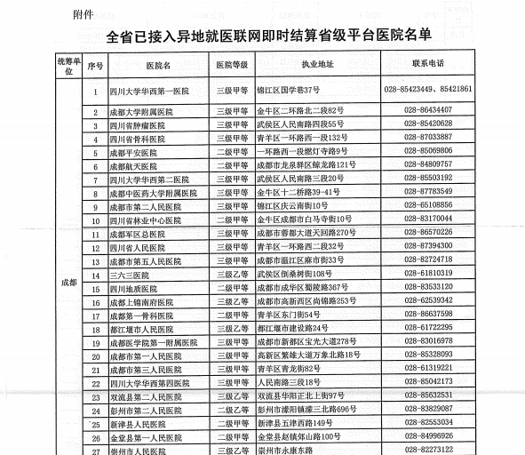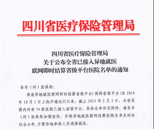 關于公布全省已接入異地就醫(yī)聯網即時結算省級平臺醫(yī)院名單的通知