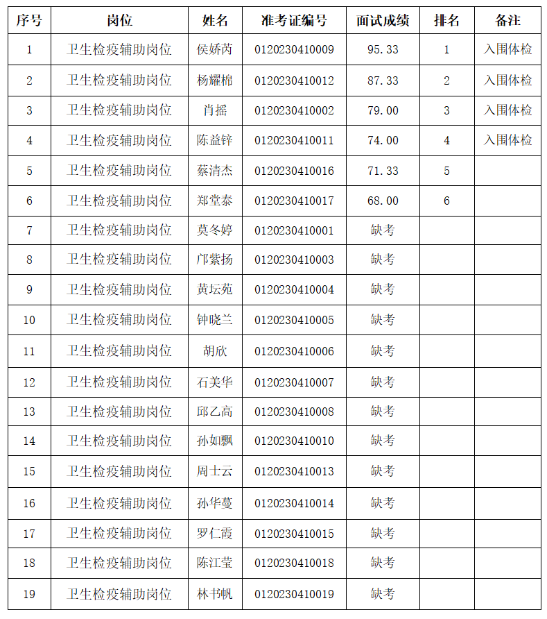 一、??诿捞m機(jī)場(chǎng)海關(guān)衛(wèi)生檢疫輔助崗位協(xié)管員面試成績(jī)表