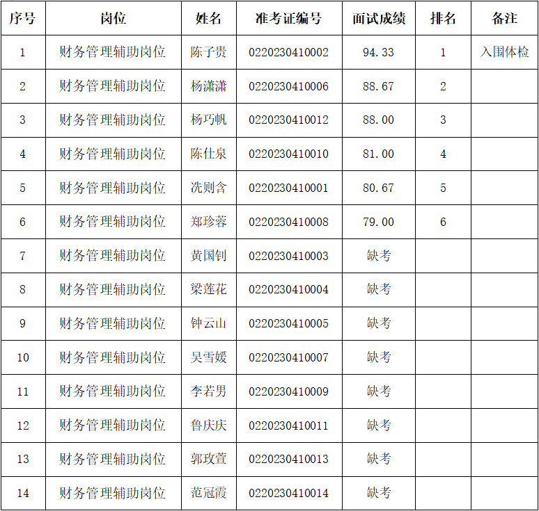 以下入圍體檢人員,體檢具體時(shí)間和地點(diǎn)另行短信通知,體檢費(fèi)用由考生自行承擔(dān)。