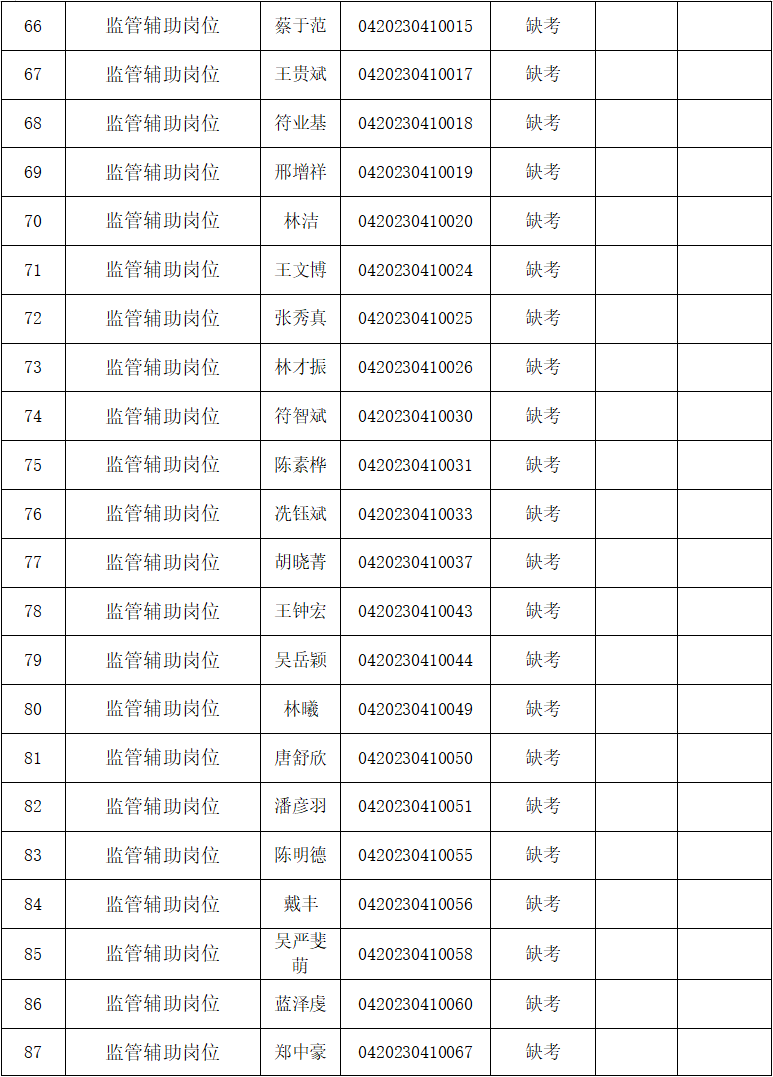 四、海口美蘭機(jī)場(chǎng)海關(guān)監(jiān)管輔助崗位協(xié)管員面試成績(jī)表